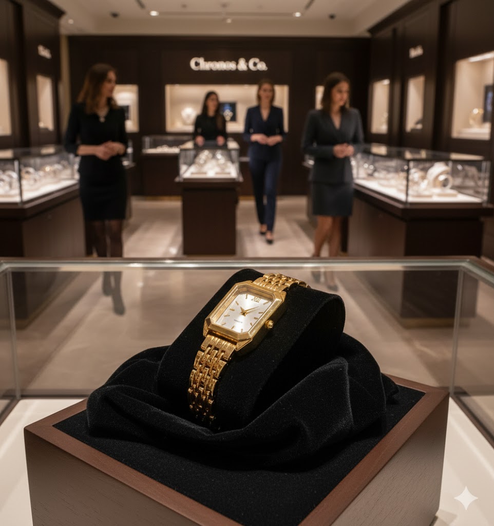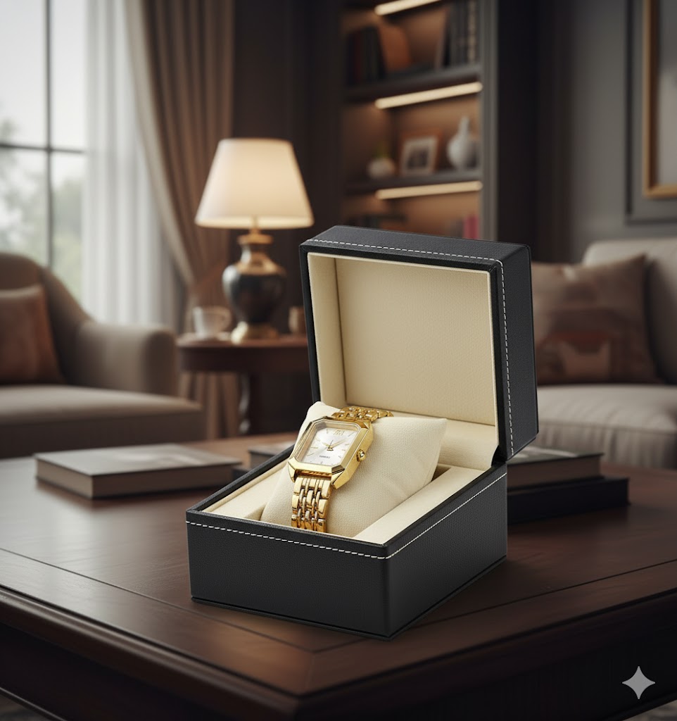 ✅ Cadran pătrat, stil regal minimalist – rafinament și detalii fine