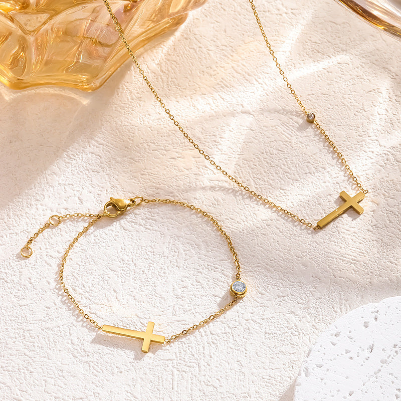 ✨Lanț și Brățară cu Cruce, Placate cu Aur 18K
