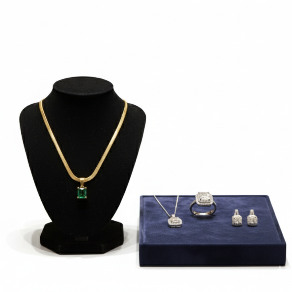 Două piese luxury care se completează perfect – colierul cu design rafinat și strălucirea bijuteriilor din argint.