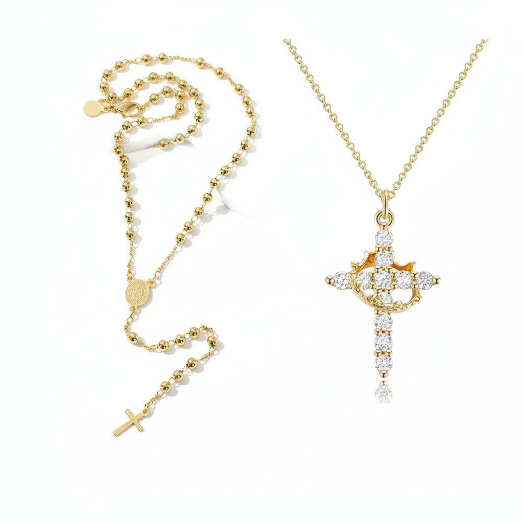 Rozariul placat cu aur de 18K poartă simbolul rugăciunii și al luminii divine, perfect atât pentru purtare zilnică, cât și pentru momente de reculegere.