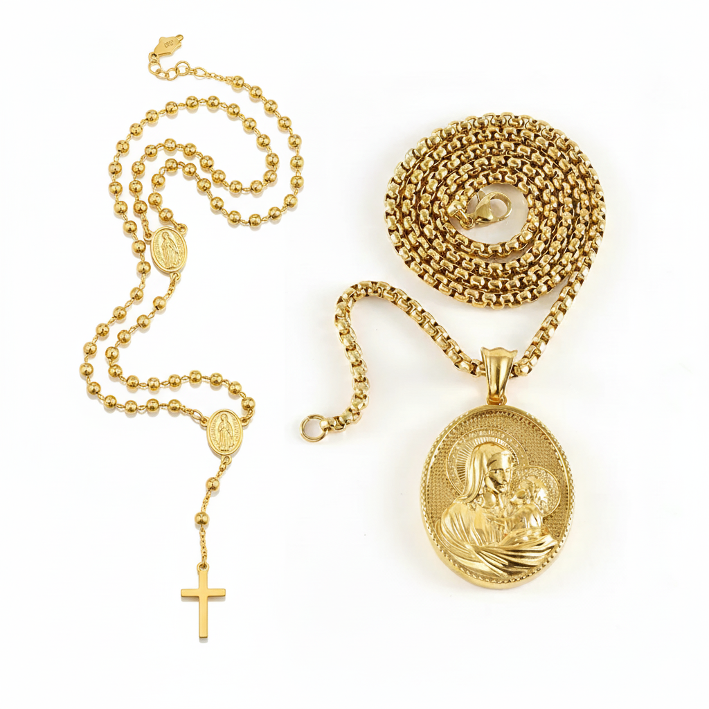 💛 Medalion sfințit chiar în Țara Sfântă + Rozariu placat cu aur de 18K, ideal pentru rugăciune și protecție zilnică.